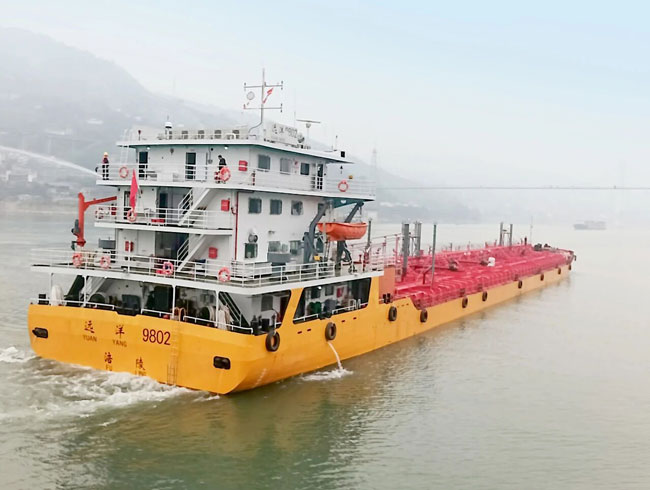 日前,在重庆涪陵区,搭载2台1000kW潍柴WH20甲醇船舶动力,110米级运油船“远洋9802”轮顺利完成回转性、操舵、Z型操纵等航行试验项目。
