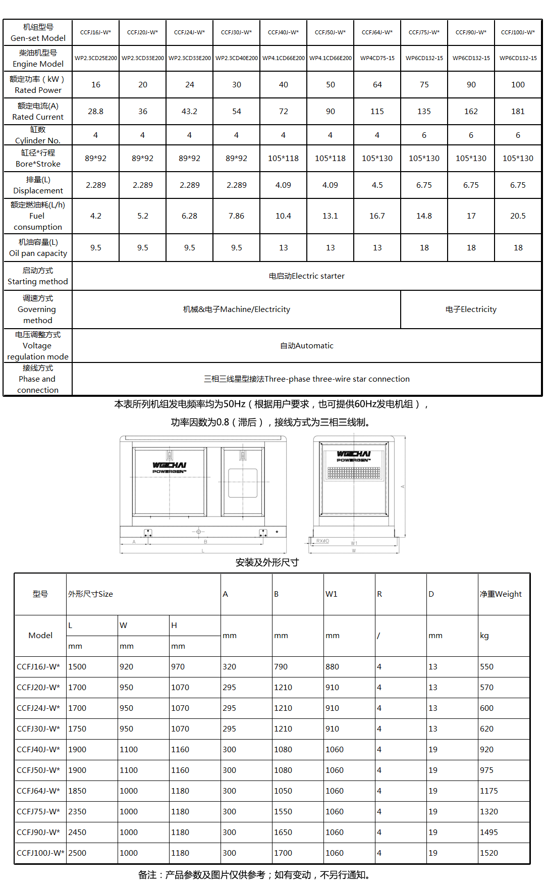 • 发电机:马拉松电机,发电机绝缘等级H级。